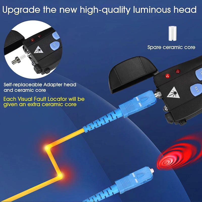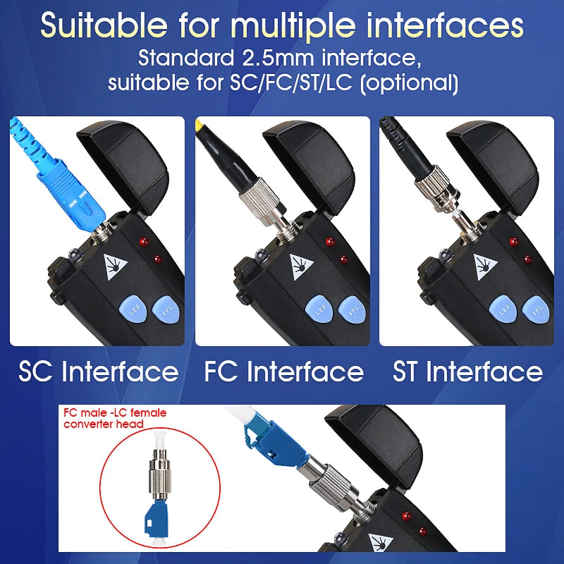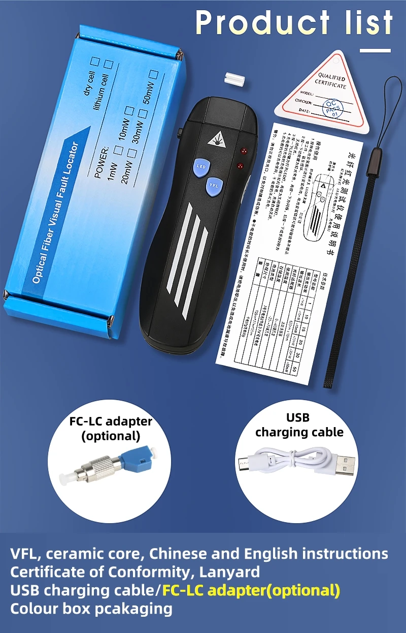 COMPTYCO FTTH Mini Visual Fault Locator 1/10/20/30/50mW Rechargeable VFL Fiber Optic Cable Tester SC/FC/ST 2.5mm Interface