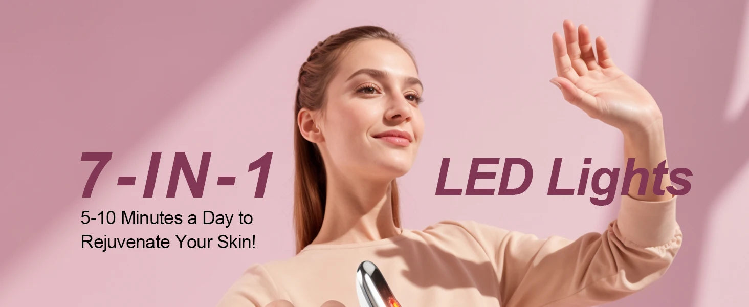 Facial and neck massager: women's red light therapy, skin lifting beauty device, 7-in-1 LED facial sculpting tool, suitable for