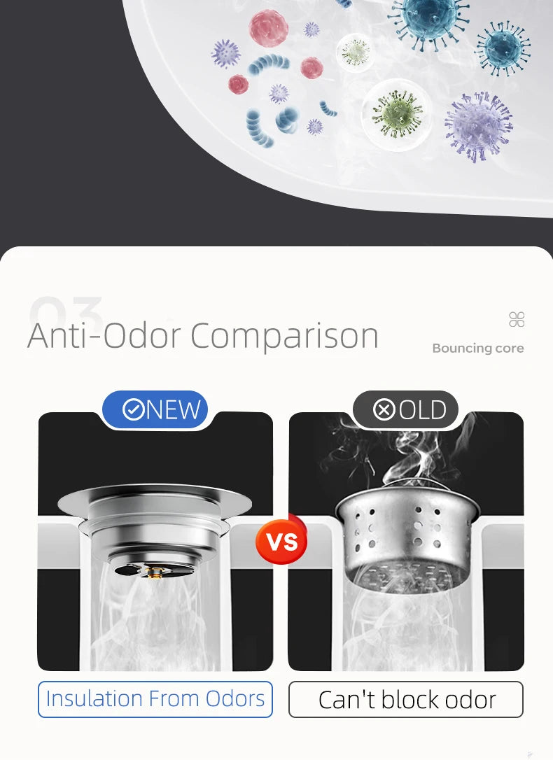 ๐๐ฒ๐ ๐ข๐๐ง๐ข๐ ๐๐ง๐ ๐๐๐ฌ๐ฒ ๐ญ๐จ ๐๐๐ข๐ง๐ญ๐๐ข๐ง: Our kitchen sink drain upholds stringent hygiene standards in kitchen. Crafted with a non-porous stainless steel surface, it naturally resists bacterial growth, waterproof, oil-resistant, and is easy to clean, saving you time and effort, ensures a fresh and clean kitchen environment.