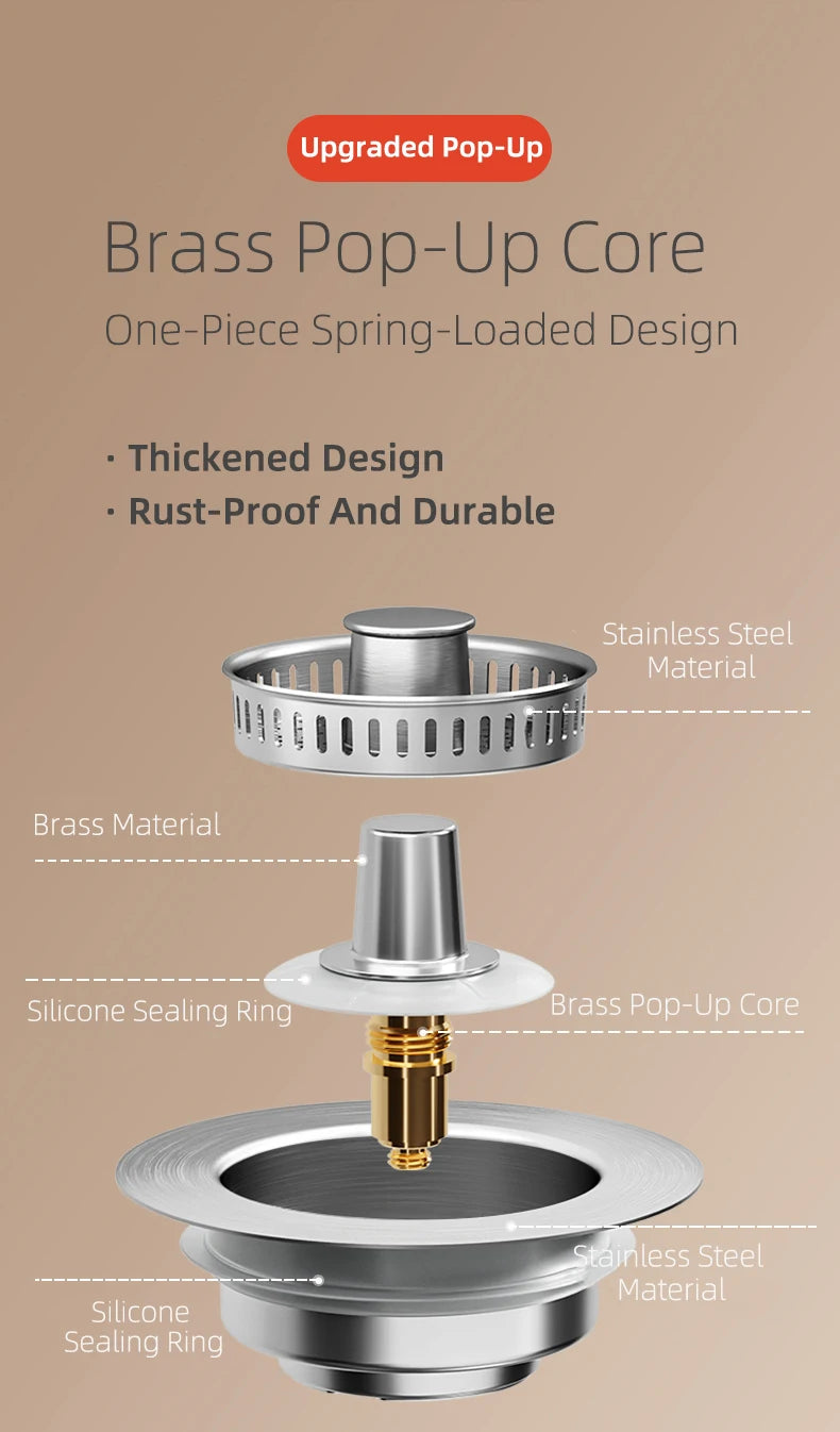๐๐ญ๐ฒ๐ฅ๐ข๐ฌ๐ก ๐๐ง๐ ๐๐ฉ๐ ๐ซ๐๐๐๐ ๐๐จ๐ฉ-๐ฎ๐ฉ ๐๐๐ฌ๐ข๐ ๐ง: The pop up kitchen sink drain stopper featuring an upgraded one-piece spring-loaded design, it allows for effortless switching between sink stopper and fast drainage straining with just one press.