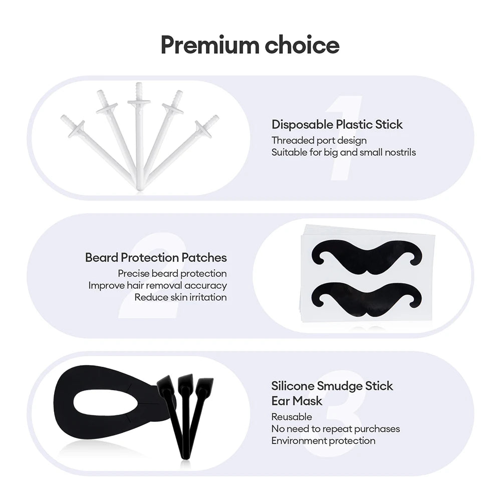 2.Efficient Hair Removal. 10W low power, fast heating, moderate wax temperature, gentle removal of nose hair, enjoy comfortable hair removal experience!.