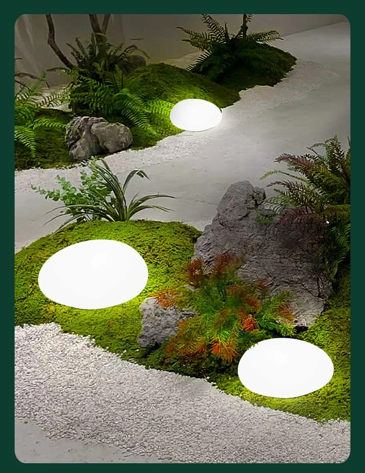 Crafted to look like natural stones, these lights blend seamlessly into any outdoor setting. Whether placed among garden greenery, along pathways, or on lawns, they add a subtle yet charming decorative element.